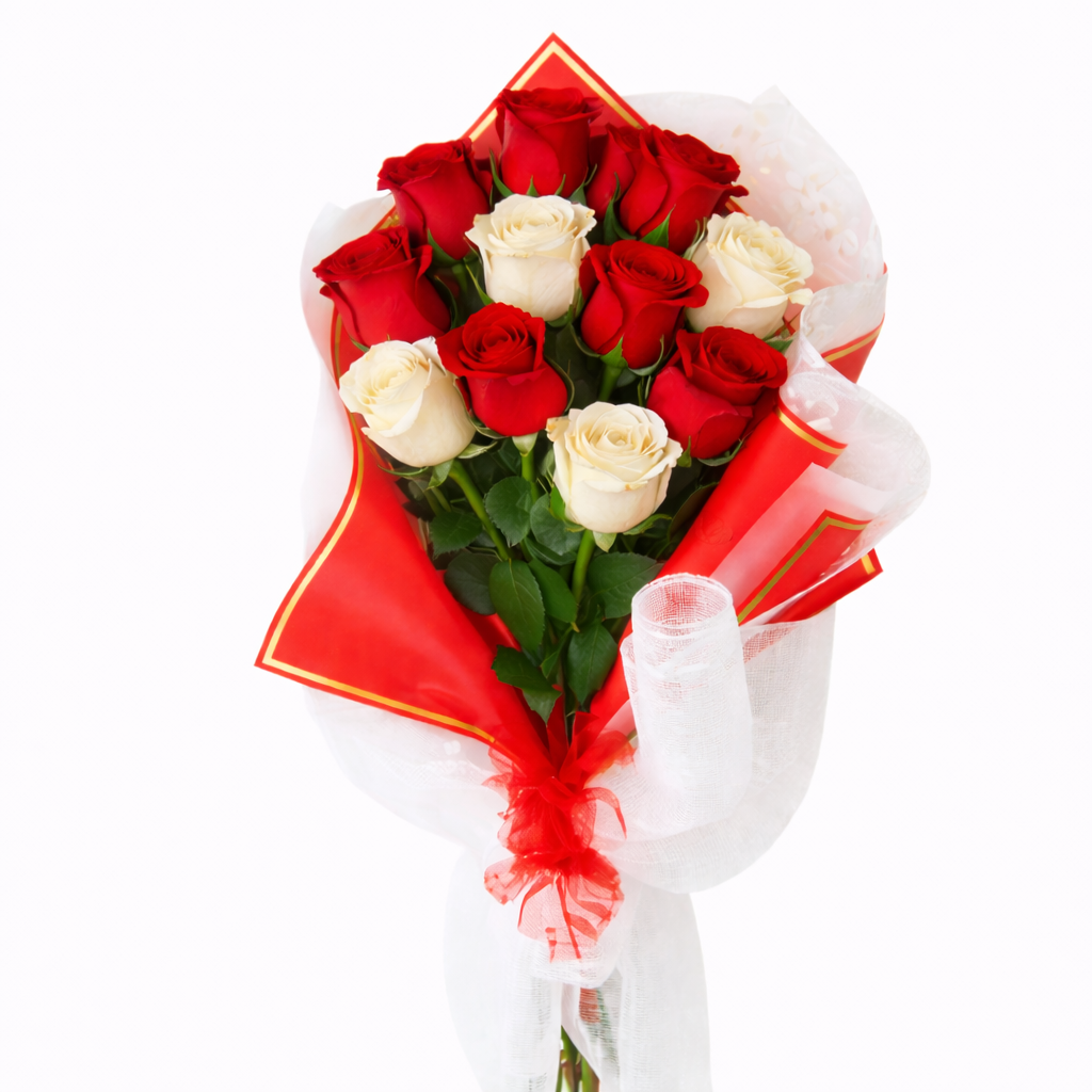 Elegante Bouquette de 12 Rosas Importadas, con finos detalles decorativos